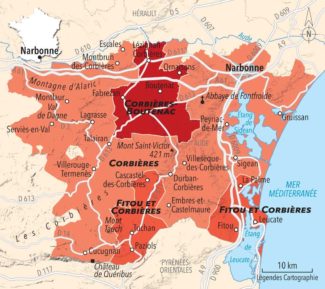 Geographically and stylistically, Fitou is subdivided into two distinct zones: Fitou Montagneux, which snakes inland toward the schist-rich mountains and hosts vineyards at elevations between 300 and 1,300 feet and Fitou Maritime, closer to the sea and spreading across the flatter, limestone plateaus of the Mediterranean coast.