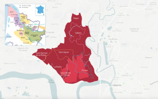 When arguing political ideologues, it’s wise to remember that the left wing and the right wing are part of the same bird; likewise, in Bordeaux, the Left Bank and the Right Bank refer to the same river system. In southwest France, about forty miles from the Atlantic, the Dordogne and Garonne rivers join to form the Gironde estuary; land below the confluence, between the two rivers, is known as Entre-Deux-Mers. Appellations on the west side of this system constitute the Left Bank, and contain perhaps Bordeaux’s most famous châteaux, those of the Médoc, Graves and Sauternes. Topsoil in this region is generally gravelly with a layer of limestone below and Cabernet Sauvignon is the dominant variety, producing age-demanding reds with big tannic infrastructures. The Right Bank covers the region to the north and east of the Gironde, where terroir contains less gravel and more clay. This allows Merlot to realize its purest potential, generally producing softer, richer and less tannic wines.